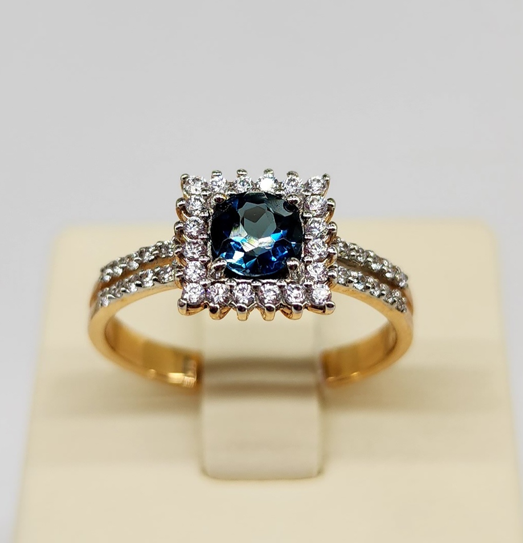 Кольцо из золота, кубик церкония и лондон топаз