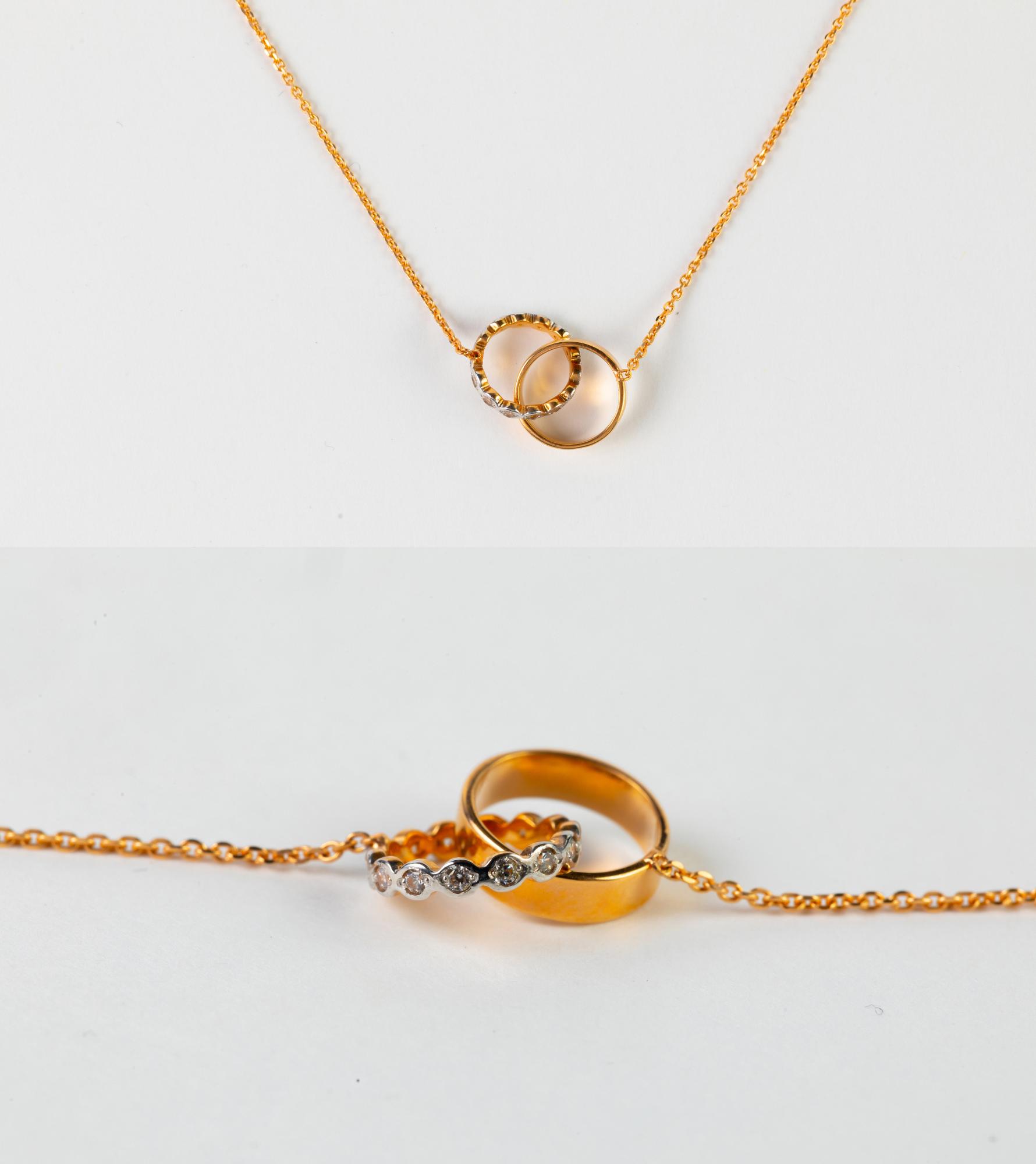 —Колье из красного и белого золота с фианитами