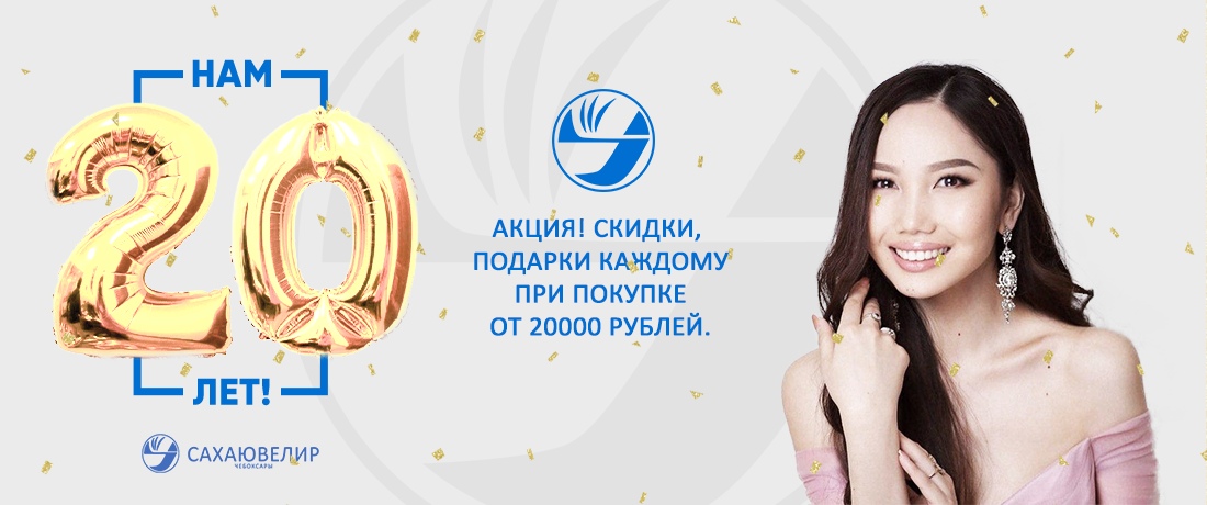 Дорогие друзья! С 24 июня по 24 июля 2020 г. у нас акция "Сахаювелир в Чебоксарах 20 ЛЕТ"! Скидки, подарки каждому при покупке от 20000 рублей! Дарите любимым лучшее - лучшее от "Сахаювелир"