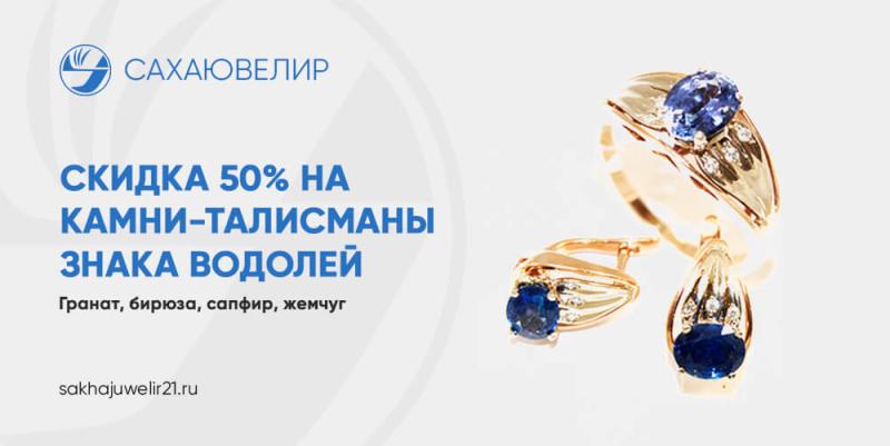 С 21 января по 20 февраля 2019, акция: Скидки 50% на золотые украшения с камнями: гранат, бирюза, сафир, жемчуг!